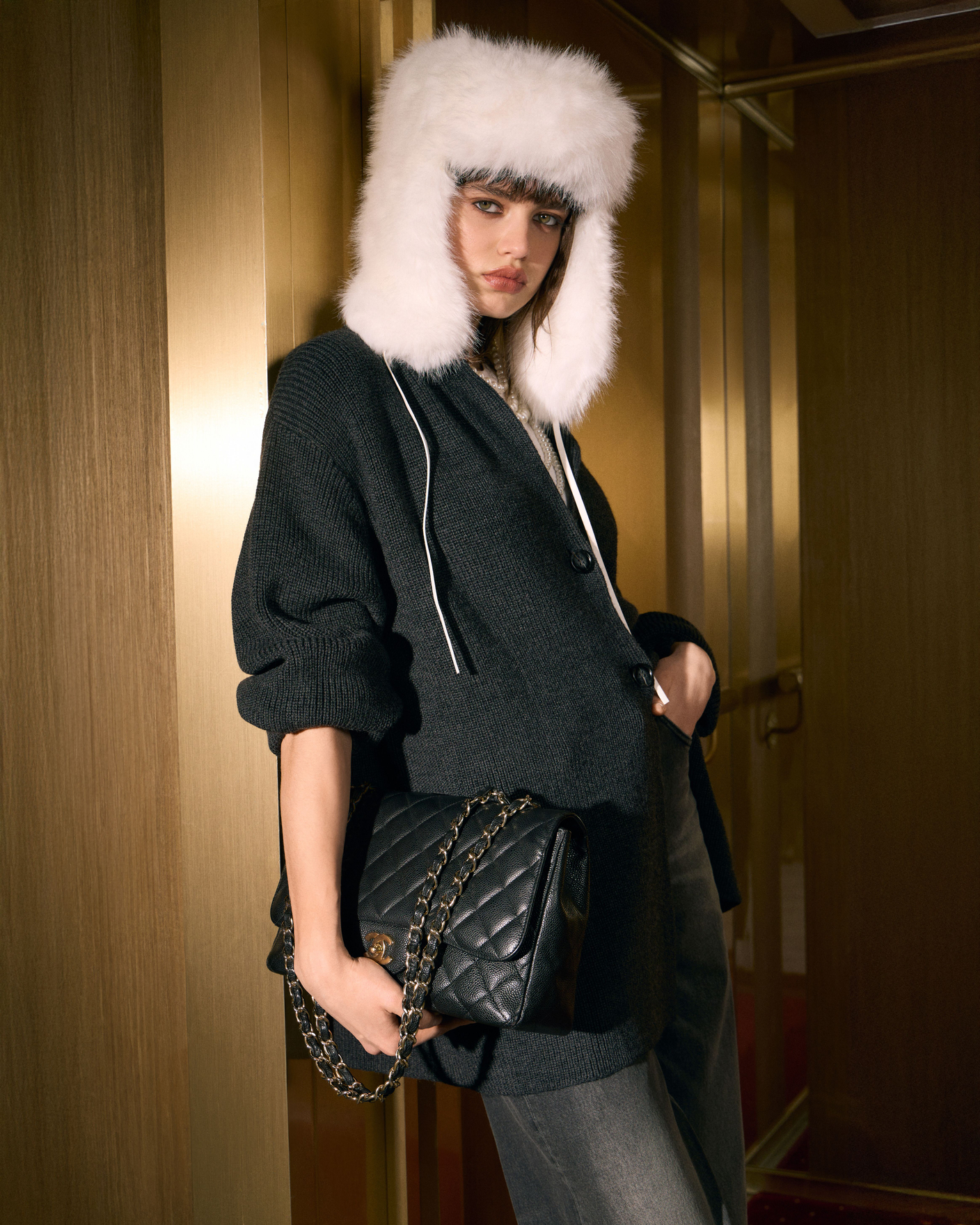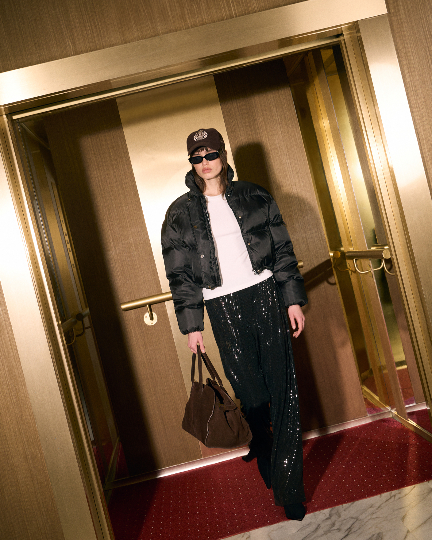 Чистые линии, архитектурные силуэты и вещи, которые действительно держат тепло. Пуховики с утяжкой на талии и натуральным гусиным пухом действительно сохраняют тепло в мороз, меринос и плотные фактуры дают устойчивый комфорт. А джинсы с высокой талией, брюки с пайетками и минималистичные, но уютные вещи собирают образ в современный ритм.