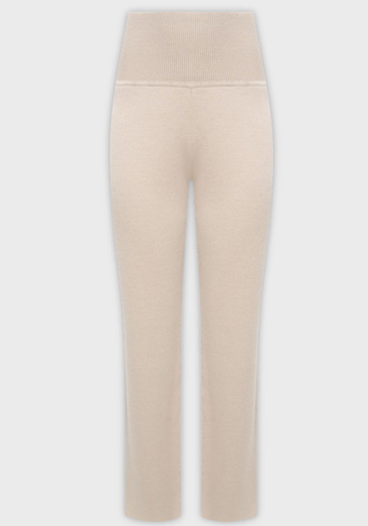 Женские брюки с высокой посадкой выполнены из мягкой шерсти мериноса в оттенке «речной жемчуг». Свободный крой обеспечивает комфорт, а эластичный пояс подчеркивает талию.