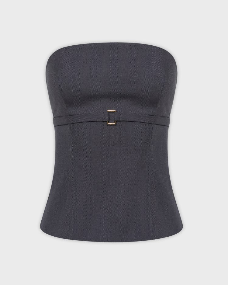 Базовый корсет из костюмной ткани с декоративной пряжкой.