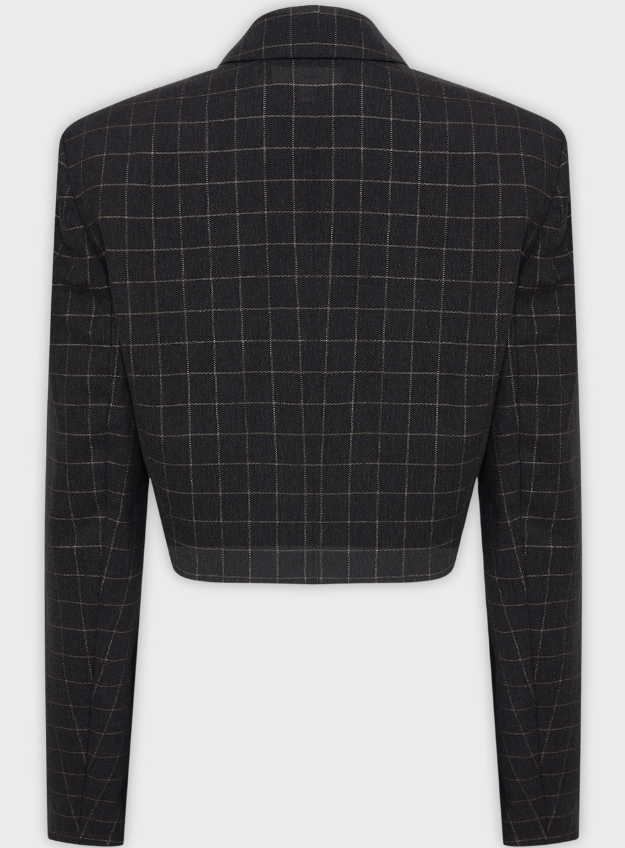 Нарядное корсетное платье в черно-золотую клетку выполнено из плотного 100% хлопка. Модель с открытыми плечами, приталенным лифом и юбкой А-силуэта дополнена кокетливым разрезом спереди. Утеплённая интерпретация классического маленького чёрного платья для осенне-зимнего гардероба.