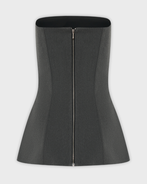 Приталенный корсет силуэта «песочные часы». Выполнен из плотной костюмной ткани, обеспечивающей комфортную посадку.